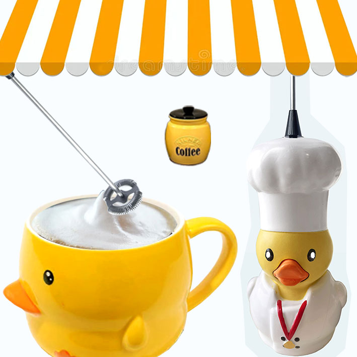 DUCKCHEF MIXER IS FUN & EASY TO FROTH YOUR CREAM IN SECS FOR YR COFFEE ANYTIME!